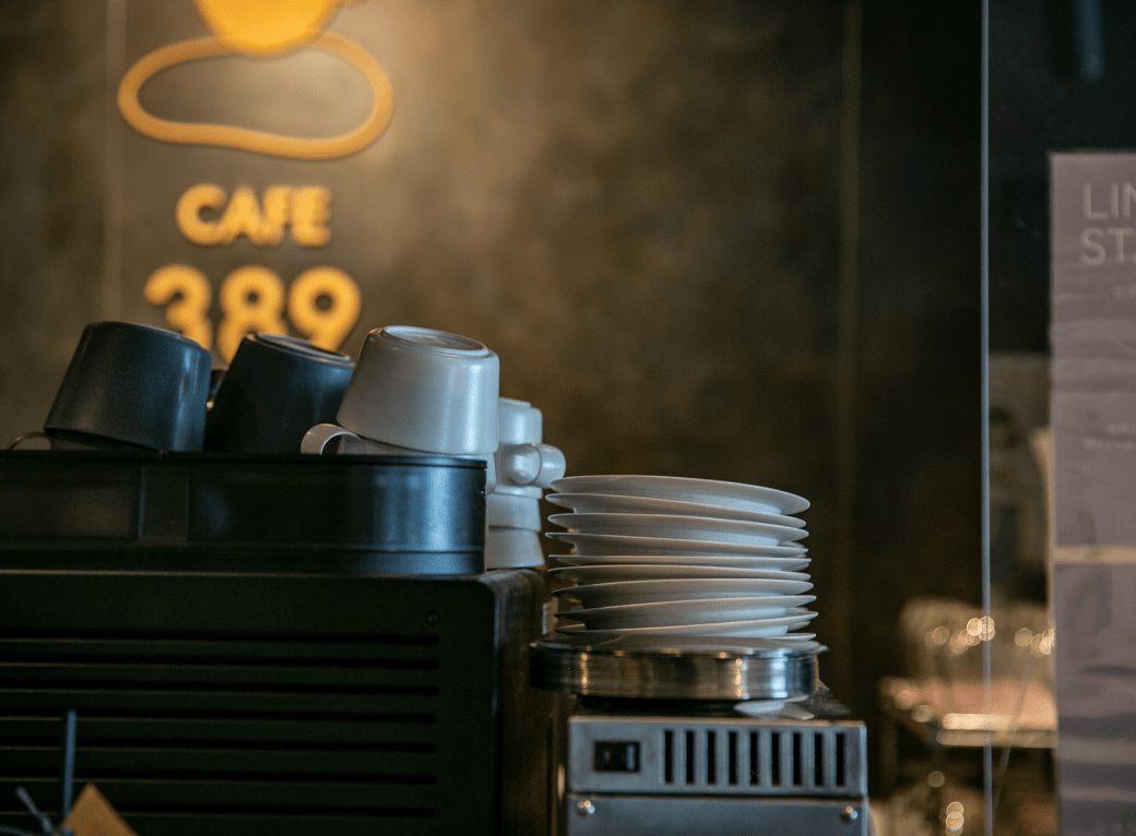 2FのCAFE389はエッグタルトや各種ケーキなどをお召し上がりいただけるスペースとなっております。