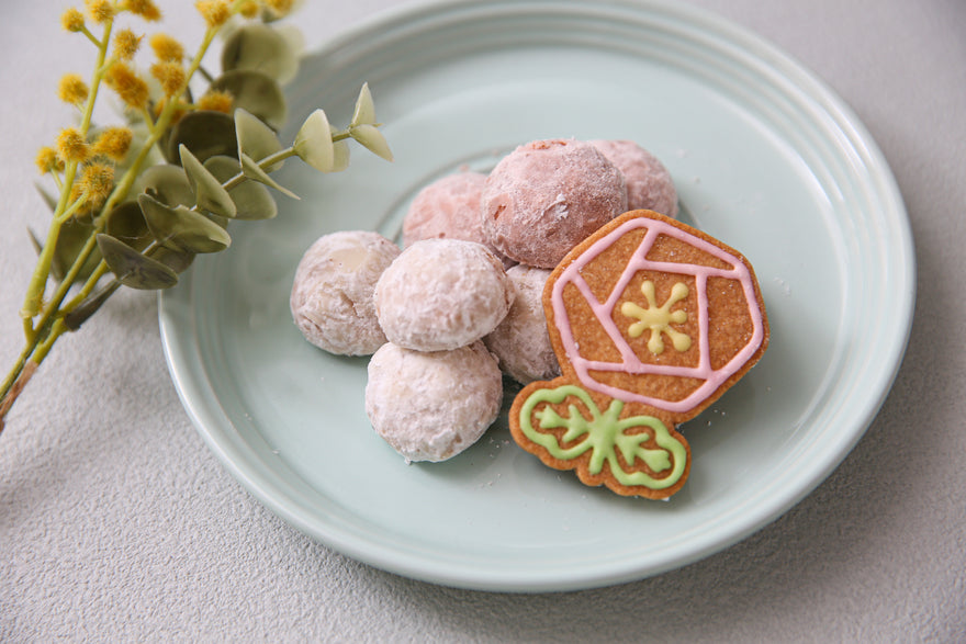 プレーンスノーボール5個、いちごスノーボール4個、アイシングクッキーー1個