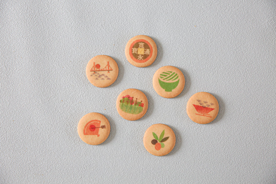 讃岐和三盆糖を使用したさっくり上品な食感のクッキー。香川県の名所をプリントしており、見て楽しい・食べて美味しい、讃岐を感じるプリントクッキーです。