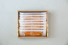 小麦粉(国内製造)、マーガリン(食用精製加工油脂、バター、食用植物油脂、その他)、砂糖類(和三盆糖、三温糖、上白糖)、卵、全粉乳、食塩/香料、乳化剤(大豆由来)、着色料(カロテン)、酸化防止剤(V.E)