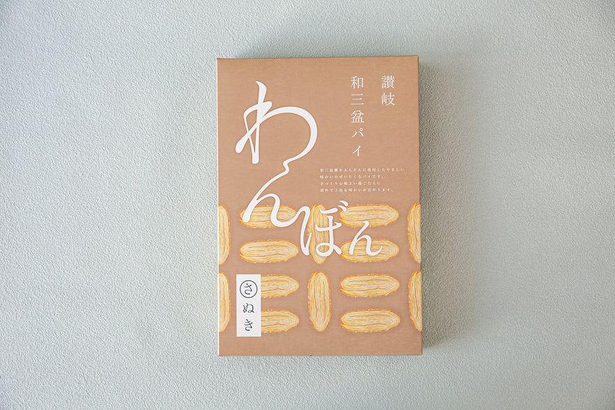 ワンランク上の讃岐土産シリーズ「わんぼん」より香川の特産品・讃岐和三盆糖を贅沢に使用したシリーズ代表作のオリジナルパイ。1986年の創業以来、三十五年以上研究してきたパイの技術が詰まった逸品です。