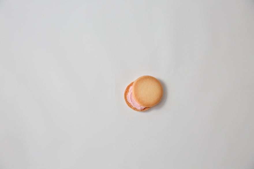 小麦粉(国内製造)、砂糖類(上白糖、粉糖)、ショートニング、マーガリン、アーモンドプードル、卵、いちご果汁粉末、全粉乳、小麦パフ、食塩/膨張剤、乳化剤(大豆由来)、香料、着色料(紅麹)、酸味料、酸化防止剤(V.E)