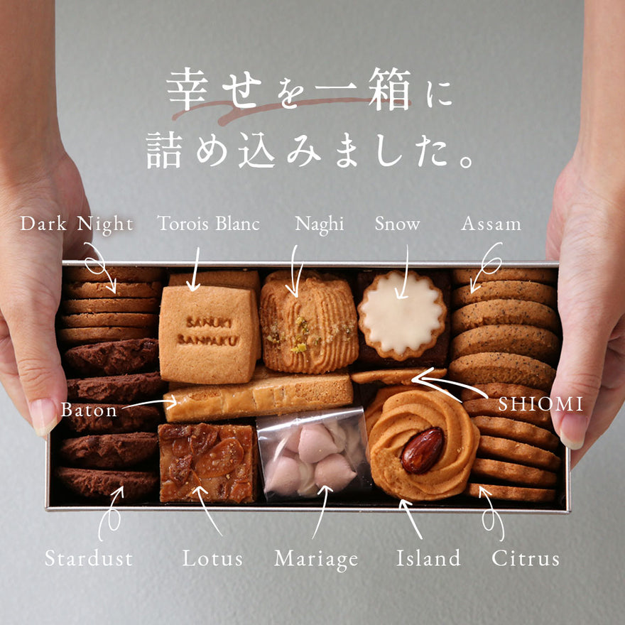 香川の県産品・讃岐和三盆糖や高松の藻塩を使用したクッキーなど12種・合計65枚、讃岐への想いがギュッと詰まった逸品です。